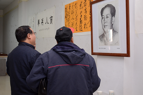 出席作品展的其他书画家也纷纷挥毫泼墨,缅怀毛泽东同志的丰功伟绩,激励青年学生奋发向上、建设祖国的豪情壮志。