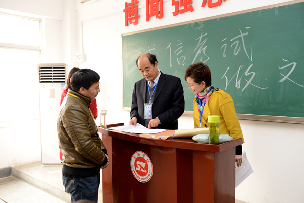 1月12日至14日,校领导刘建林、王思怀、魏书堂、彭虎军、范新会、刘宝盈在学校办公室和教务处相关负责人的陪同下,视察了期末考试工作情况。