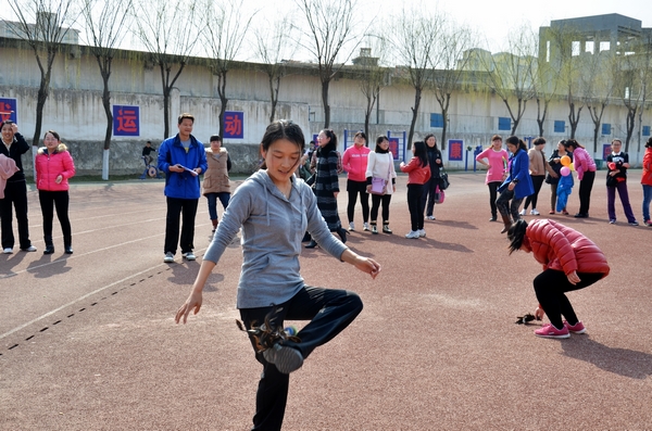 3月8日,春风和煦,阳光明媚,校工会和体育教学部在体育场联合举办了以“凝神聚气迎评建,趣味健身同欢乐”为主题的女教职工趣味运动会,庆祝“三八”国际劳动妇女节。校党委副书记、工会主席彭虎军出席庆祝活动并讲话。工会委员、女工委员、工会各分会主席和女教职工参加了活动。