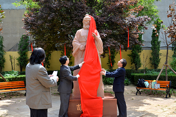 在纪委书记王思怀与艺术学院院长刘凤林等的陪同下,许聪鑫一行参观了西门艺术长廊并出席了仓颉像揭幕仪式。许聪鑫与王思怀一同为仓颉像揭幕。范新会在揭幕仪式上指出,商洛学院作为商洛地区唯一一所本科院校,肩负着传承中华民族优秀文化的历史使命,两校一同为仓颉像揭幕,充分体现了海峡两岸炎黄子孙对中华文化的高度认同和充分信任。我校将继承仓颉造字的首创精神,加快发展步伐,为商洛地区的社会发展提供文化引领,希望双方紧密携手,加强合作、共同发展,为社会进步、文化传承作出应有的贡献。许聪鑫指出,很高兴能参加仓颉像的揭幕仪式,商洛是一个非常具有人文气息的地方,仓颉像的塑立体现了商洛学院对中华文化的保存与敬仰,祝福商洛学院在商洛这片文化底蕴深厚的热土上取得更加长足的发展。