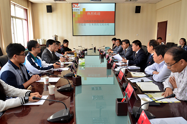 5月5日,台湾南开科技大学副校长许聪鑫博士一行来我校访问交流。校党委书记张景书会见了许聪鑫一行。许聪鑫与副校长范新会及相关部门负责人进行了座谈。座谈会由发展规划与合作交流处处长王新军主持。