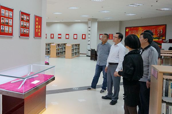 在商洛红色文化资料馆,解华波一行听取了图书馆流通部主任王晋月的讲解,着重了解了转战商洛的红四方面军、红三军、红二十六军、红二十五军和红十五军团等五支红军部队的战史,以及李先念、徐向前、贺龙、王震、徐海东、刘志丹等老一辈无产阶级革命家在商洛浴血奋战的光辉事迹。对商洛红色文化资料馆丰富的实物和文献馆藏,解华波表示了高度赞赏。他指出,商洛红色文化资料馆的建成,不但为商洛学院在校学生开展革命传统教育和爱国主义教育建立了一个良好的平台,也为商洛地方革命史研究和青少年爱国主义教育的重要基地;希望商洛学院充分发挥资料馆的优势,为商洛地方弘扬社会主义核心价值观、加强地方文化建设做出应有的贡献。