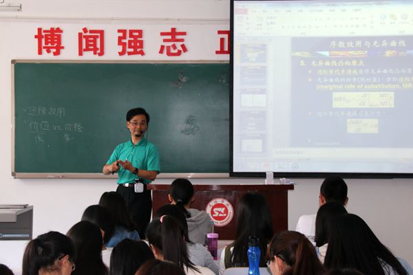 林我崇博士主讲《经济学》课程。他幽默风趣,讲授知识时要求同学们结合自身经历思考问题,以学生为主体,其独特的教学方式令学生耳目一新。