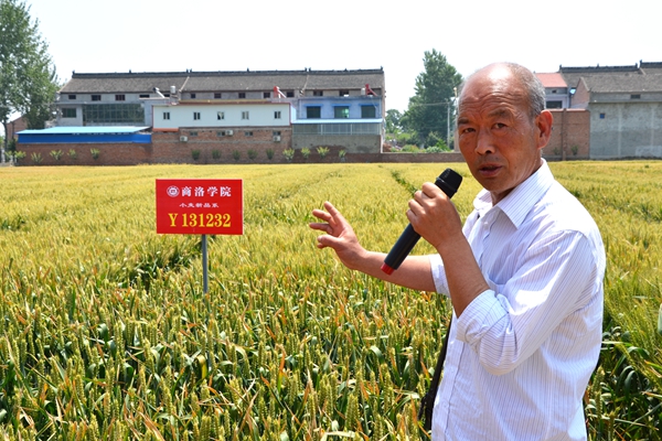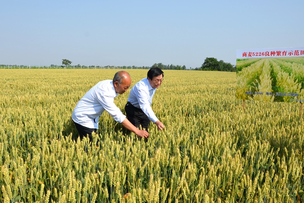 在咸阳市泾阳县兴隆镇,张景书深入商麦“5226”示范田,与商麦种植示范户亲切交谈,观摩了商麦的抗旱性、长势、落黄及籽粒饱满情况,了解了商麦“5226”在今年多雨季节的抗病情况、产量及推广面积。泾阳县现代种业公司经理藏喜详细介绍了商麦“5226”在渭北旱塬、甘肃陇南的实验情况,并表示“商麦5226”有望成为渭北旱塬地区小麦主栽品种。