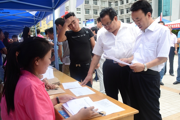 我校2015级新生将于9月6日、7日入学报到。9月5日,副校长魏书堂、校党委副书记彭虎军、副校长刘宝盈在学校办公室、宣传部、教务处、学生处、招生就业处、财务处、校团委、保卫处、后勤保障处等相关职能部门负责人陪同下,深入迎新接待场点,检查指导迎新工作。