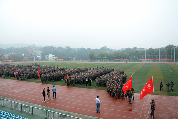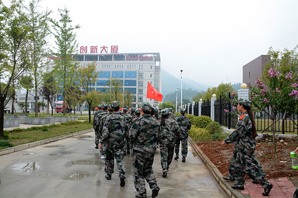 上午8点,全体新生身着迷彩服,从学校体育场出发,沿北新街、江滨大道、商鞅大道步行抵达丹江校区并返回,全程10公里。在3个小时的行军过程中,新生们精神抖擞、队列齐整、秩序井然,充分展示了军训成果和我校学子乐观向上、勇于挑战、能吃苦耐劳的精神风貌,引来了过往市民的注目和赞扬。