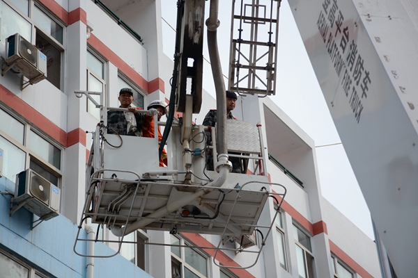 消防官兵竖起云梯,两名学生安全获救