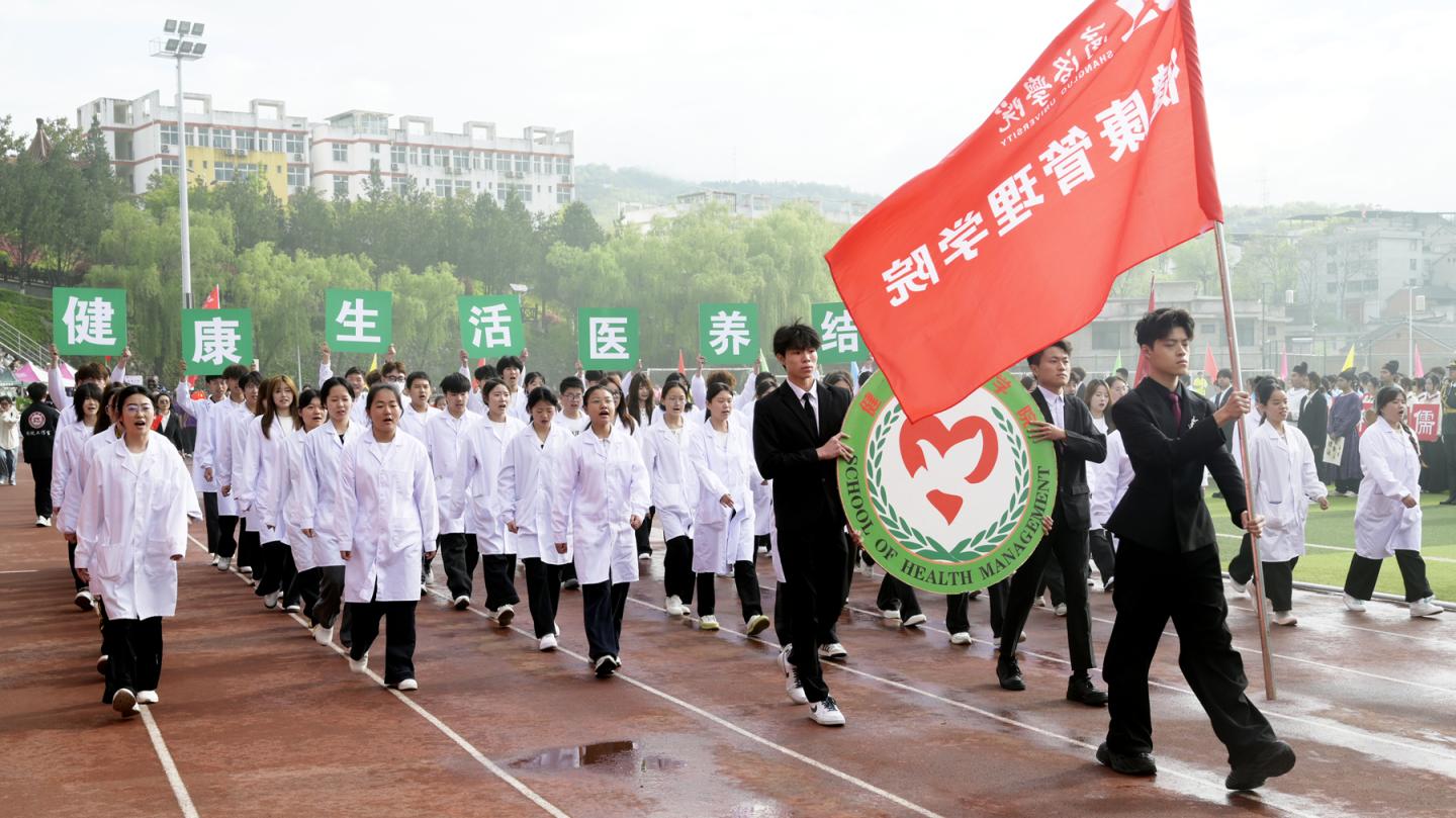 开幕式文艺展演精彩纷呈、气势恢宏。人文学院《栉风沐雨五十载龙腾狮舞谱新篇》鼓乐齐鸣、气势磅礴,抒发了师生喜迎建校50周年的真挚情怀;附属小学《纱球舞》轻盈灵动、童趣盎然,尽显青春朝气与蓬勃生机;生物学院200名学子带来《挥棍震山河 扬帆十五五》,棍法刚劲、队列整齐,秦风古韵与时代风采交相辉映;教育科学学院、艺术学院联袂献上《春逢盛世 共赴新程》,舞姿优美、歌声嘹亮,礼赞新时代、奋进新征程。整场展演融传统文化与时代气息、体育精神与校园文化于一体,赢得全场阵阵掌声。