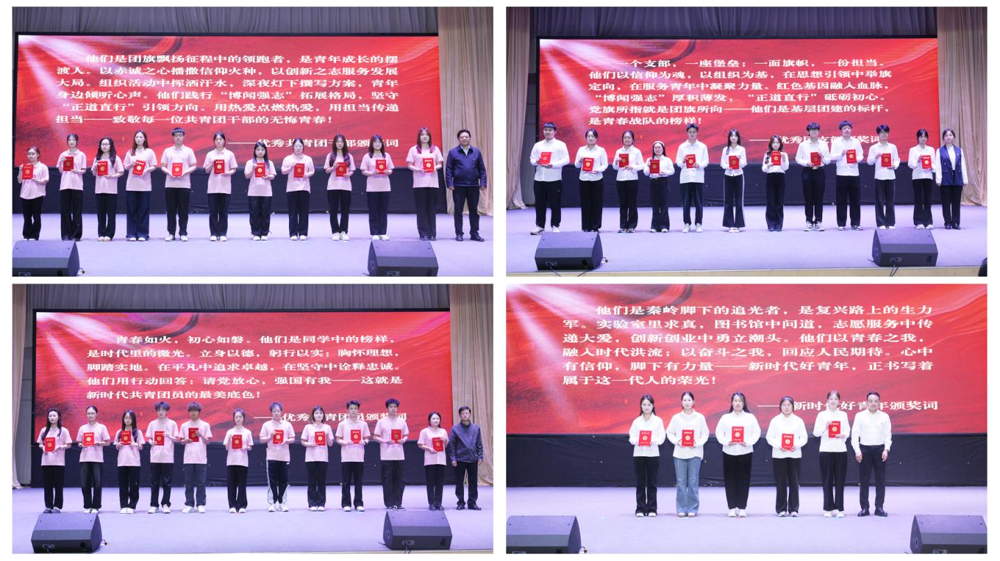 大会隆重表彰了2025 年度学校 “新时代好青年”、省级暑期 “三下乡” 社会实践优秀个人与优秀团队,以及3个优秀团总支、17个优秀团支部、3名优秀团总支书记、304名优秀共青团干部、410名优秀共青团员。在热烈的掌声中,与会领导为获奖集体和个人代表颁奖。