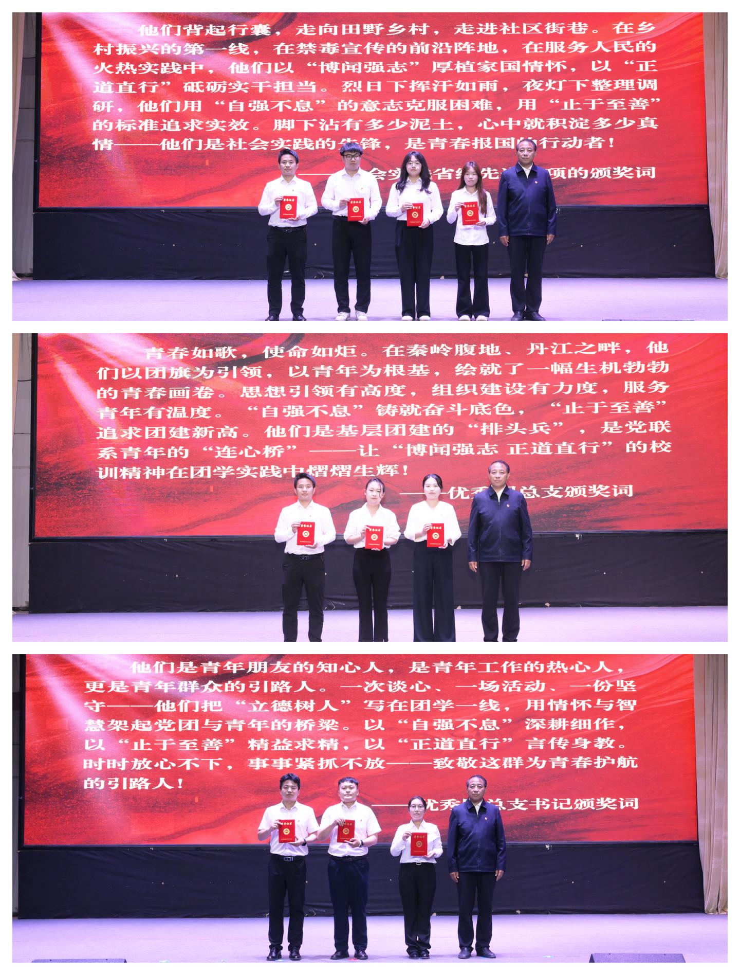 大会号召全校团员青年要以受表彰的先进典型为榜样,踔厉奋发、勇毅前行,在民族复兴的赛道上奋力奔跑,以青春之我、奋斗之我,书写无愧于时代、无愧于人民、无愧于母校的精彩篇章。各级团组织要继续发扬“党有号召、团有行动”的优良传统,推动五四精神在商洛学院薪火相传,让青春在为祖国、为民族、为人民的不懈奋斗中绽放更加绚丽的光彩。