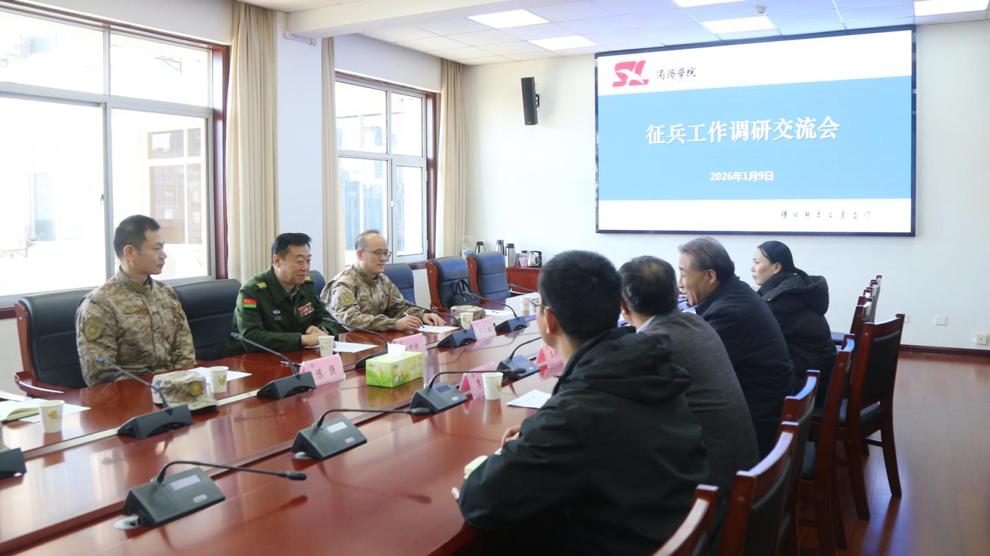 1月9日下午,市委常委、商洛军分区大校司令员王中锋、动员处上校处长韩力娃、商州区人武部上校部长陈强一行来校调研大学生征兵和国防教育工作。校党委副书记王新军出席调研座谈会。我校人民武装部负责人及相关工作人员参加座谈。
