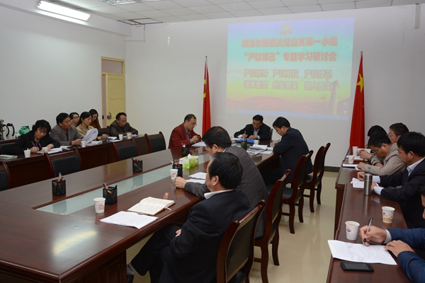 10月22日下午,机关党总支围绕“严以律己”专题召开学习研讨会。机关党总支所属11个党支部的48名处科级干部分成两个小组参加了学习研讨。校党委委员、教学评估中心主任刘端森,党委委员、干部人事处处长高荣发分别主持学习研讨会。