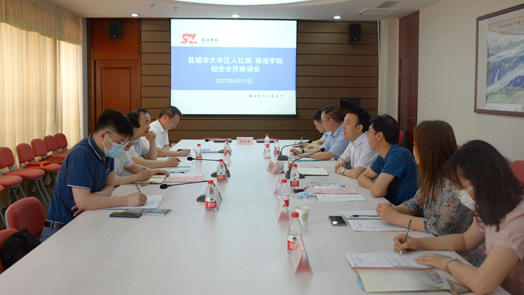 为积极落实“访企拓岗促就业”专项行动各项任务,不断扩展校企合作、产教融合办学格局,助力我校毕业生充分、高质量就业,6月10日,我校邀请盐城市大丰区人社局及5家用人单位来商,共同举办江苏大丰“黄海明珠 惠企助才”商洛学院专场招聘活动。校党委副书记彭虎军,大丰区人社局党委书记、局长张强,学生处处长杨存典及相关人员参加校地、校企合作座谈会。座谈会由马克思主义学院院长蒋正治主持。