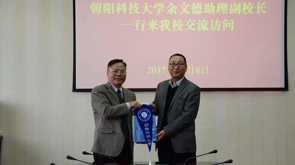 12月8日,台湾朝阳科技大学助理副校长余文德一行来我校访问交流,副校长刘宝盈出席座谈会。