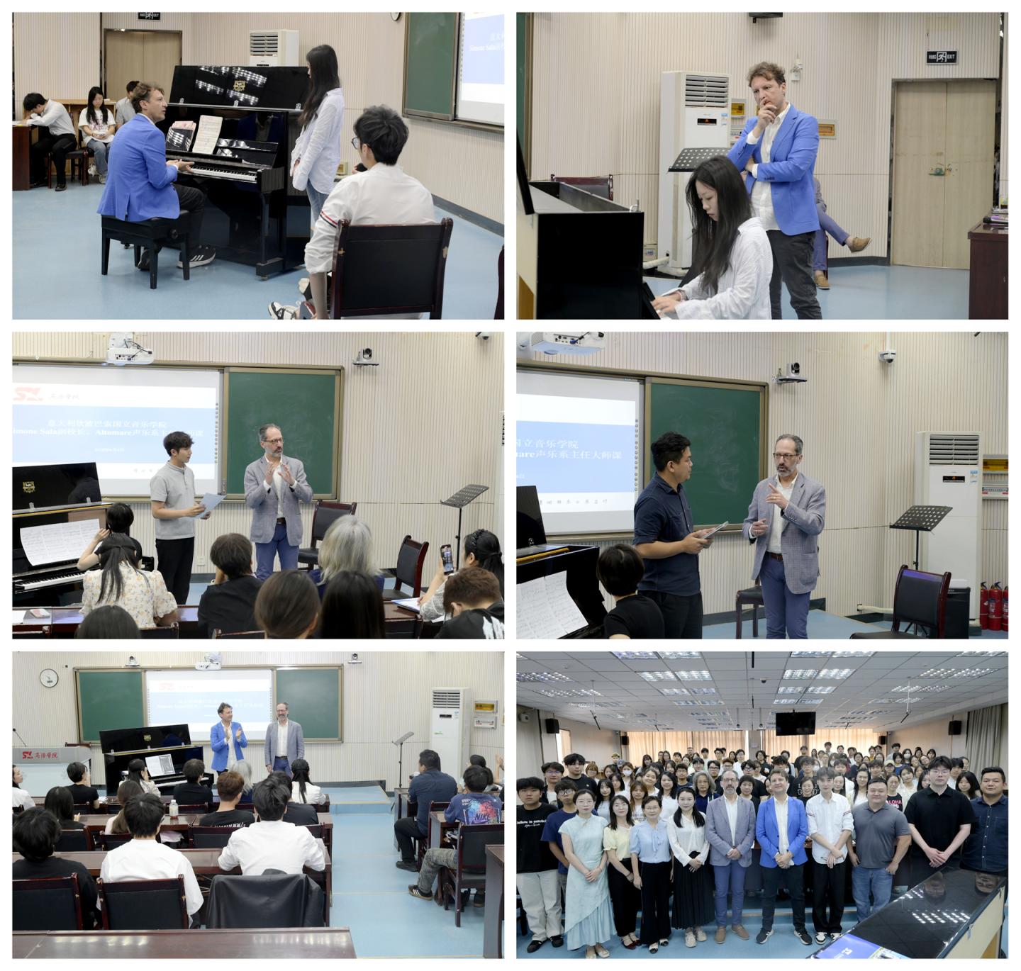 访问期间,萨拉教授与阿尔托马雷教授分别为我校艺术学院音乐系师生讲授了现场大师课。萨拉教授针对学生的钢琴演奏,在节奏掌控、指法技巧及音乐表现力等关键环节进行了细致入微的指导。阿尔托马雷教授聚焦声乐演唱中的气息控制、声音舒展性、语言精准度及艺术感染力等方面,为师生提供专业的指导。