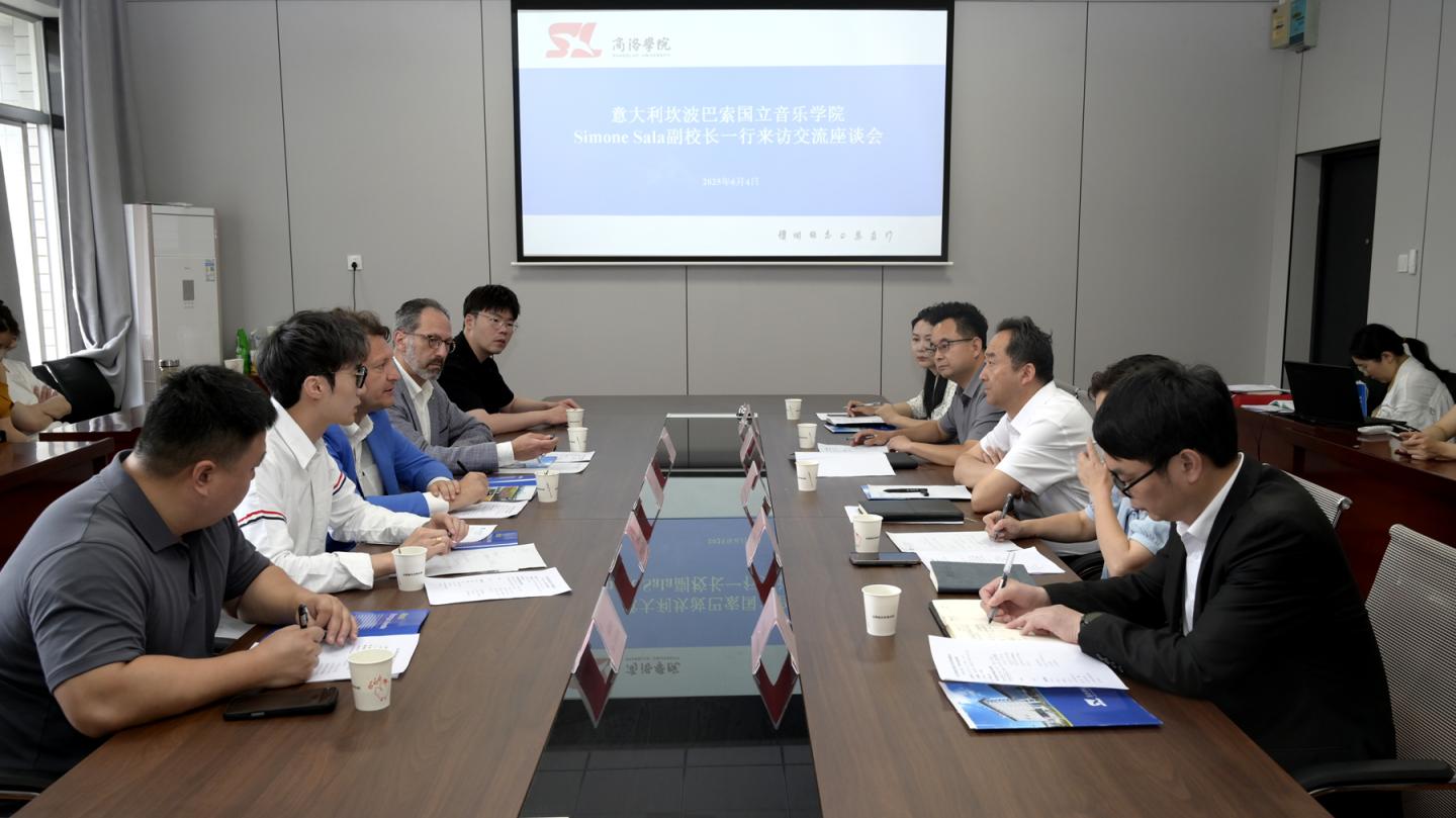 6月4日,意大利坎波巴索国立音乐学院副校长、钢琴家西蒙尼·萨拉教授,声乐系主任、男中音歌唱家朱塞佩·阿尔托马雷教授等一行5人来校访问交流。副校长张向东接待会见代表团,双方围绕学生短期交流、学历层次提升、教师互访研修等内容进行了座谈交流。