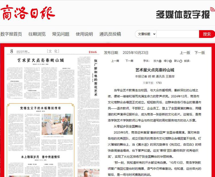 如今,商洛市文化馆群众合唱团已成为市民文化生活中一道固定而亮丽的风景。排练厅内,歌声如溪流般清澈流淌,专业指导与群众热情交织,持续激活基层文化生态。商洛市文化馆馆长王书亚说:“商洛学院教师的义务奉献,为全民艺术普及注入了专业灵魂。”