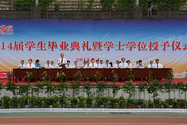 “一朝师生情终生缅于怀,学子闯天下母校候佳音”“累累硕果装满行囊,浓浓师恩铭刻心房”,一条条标语成为一道靓丽的风景线,一段段激扬的旋律回荡耳畔,展现了学校对毕业生们深切的祝福。7月1日,我校2014届学生毕业典礼暨学士学位授予仪式在体育场隆重举行,2673名毕业生踏上新的人生征途,奔赴祖国各地建功立业