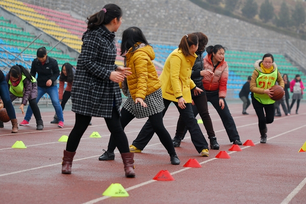 随后举办的趣味运动会设有“海底捞月”、“袋鼠跳”、背球接力等三个集体项目,单人跳绳和单人踢毽两个个人项目。平日里紧张工作的女教职工们放松身心,一改严肃的面孔,轻装上阵,踊跃参赛。男教职工们也兴致勃勃地来到活动现场为女教职工们出谋划策、加油喝彩。活动现场笑声不断,氛围轻松愉悦,充分展示了我校女教职工团结、向上、开朗、活泼的风采魅力。