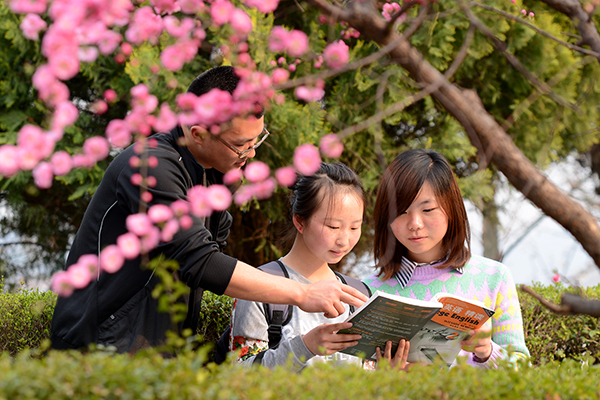 四月的校园,万物复苏,气温回暖,各种植物退下了冬日的臃肿,换上了充满生机的春装,校园里一派暖春的景象。柳树初生的嫩芽随风摇曳,些许杏花展露微白的花蕊,桃花偷偷羞红的笑脸,舞活了整个生机盎然的校园。同学们享受着鲜花和暖阳,在春光明媚的校园里读书、学习;趁着春意踏青、春游,用手机和相机留下美好的瞬间,在操场上锻炼的人也渐渐增多。