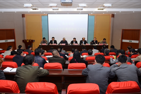 4月9日,我校召开2014年度党风廉政建设工作会,传达上级党风廉政建设会议精神,部署我校今年党风廉政建设工作任务。校党委书记张景书出席会议并讲话。党委副书记、校长刘建林主持会议。纪委书记王思怀传达中省会议及习近平总书记重要讲话精神,对我校2014年度党风廉政建设工作做了安排部署。校领导左晓民、魏书堂,全校处体科级领导干部参加了会议。