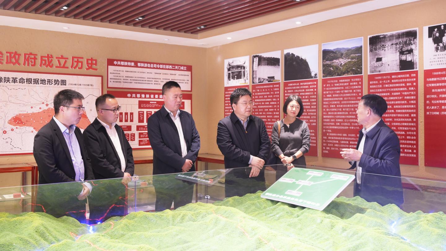 在米粮镇鄂陕镇安县苏维埃政府旧址红色教育基地,井浩一行实地参观了解红二十五军在镇安县建立鄂陕边苏维埃政府的革命斗争史,并听取了商洛发展研究院(智库)团队关于红色教育基地规划设计方案的专题汇报。