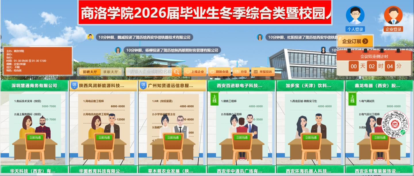 1月30日,我校举办2026届毕业生毕业生冬季综合类暨校园人力资源市场高校毕业生就业服务专项行动专场网络视频招聘会。本次招聘会精准邀请省内外220余家优质用人单位,岗位覆盖信息技术、高端制造、文化教育、医疗卫生等多个关键领域。招聘活动累计提供有效就业岗位近4000个,为毕业生搭建了层次高、领域广、渠道畅的云端求职平台。