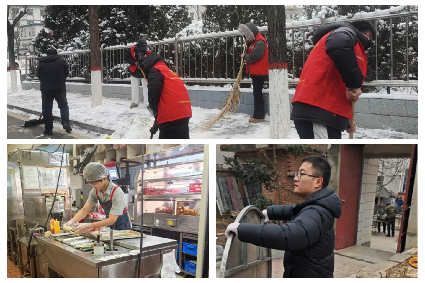 学校坚持以劳立身,引导学生在劳动实践中体悟价值、诠释感恩。寒假期间,数计学院等学院学生顶风冒雪清扫乡间道路与社区积雪,积极参与家庭扫除、备餐烹饪,在烟火气中感悟亲情与责任。还有部分学生在服务行业开展勤工俭学,以细致周到的服务坚守岗位,在付出中锤炼吃苦耐劳、敬业乐群的优良品质。