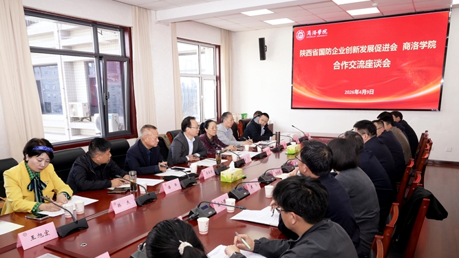 4月9日下午,陕西省国防企业创新发展促进会与商洛学院合作交流座谈会在学校召开。学校校友、促进会党委书记孟军率队来访,共商校会合作、产教融合与协同发展事宜。校党委书记井浩,副校长张向东、程敏出席座谈会。